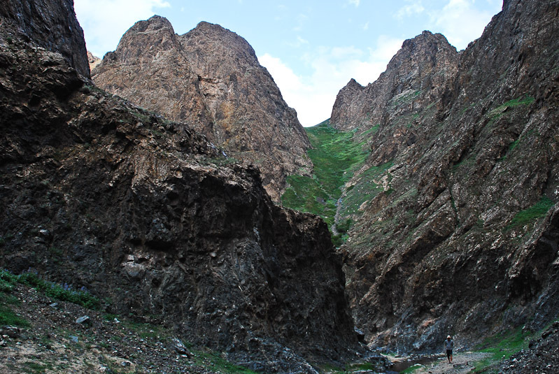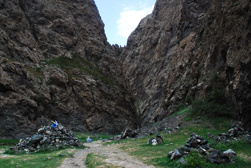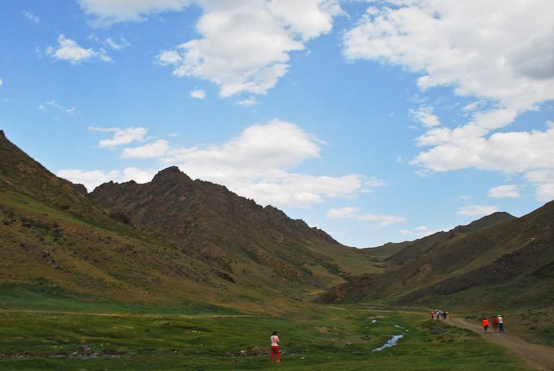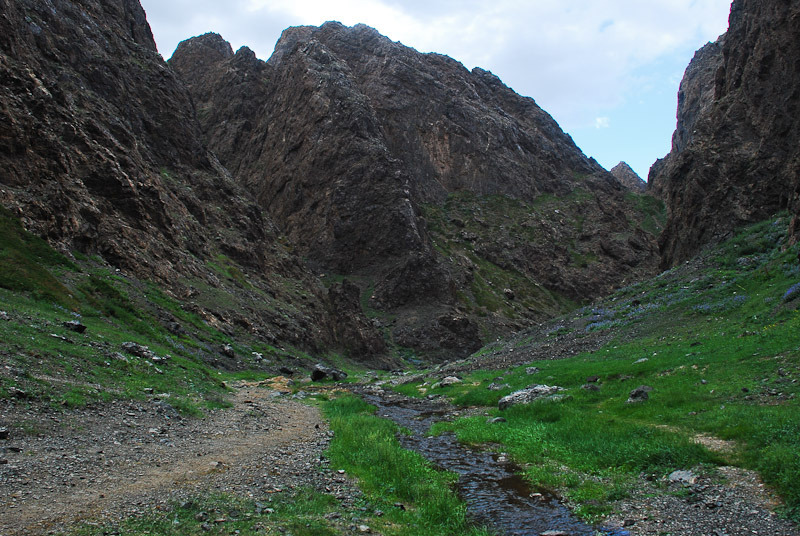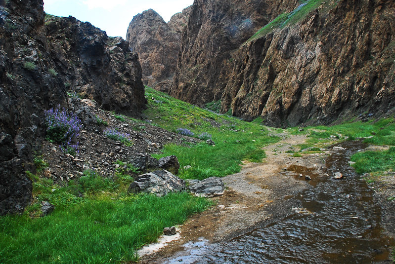 | 남고비사막 최대의 도시 달란자가드에서 서쪽으로 약 40km 떨어진 곳에 있다. 욜린암은 우랄알타이 산맥의 지류로 독수리 계곡 또는 얼음 계곡이라고 하는데 여름에도 얼음이 얼어 있다고 해서 얼음 계곡이고, 바위산의 모습이 독수리 모양을 띄고 있다고 해서 독수리 계곡이라고도 부른다. 주위에 야생화도 많고, 우리가 방문 하였을 때는 얼음이라기 보다 녹지 않은 눈이 한덩이가 있었다. |
